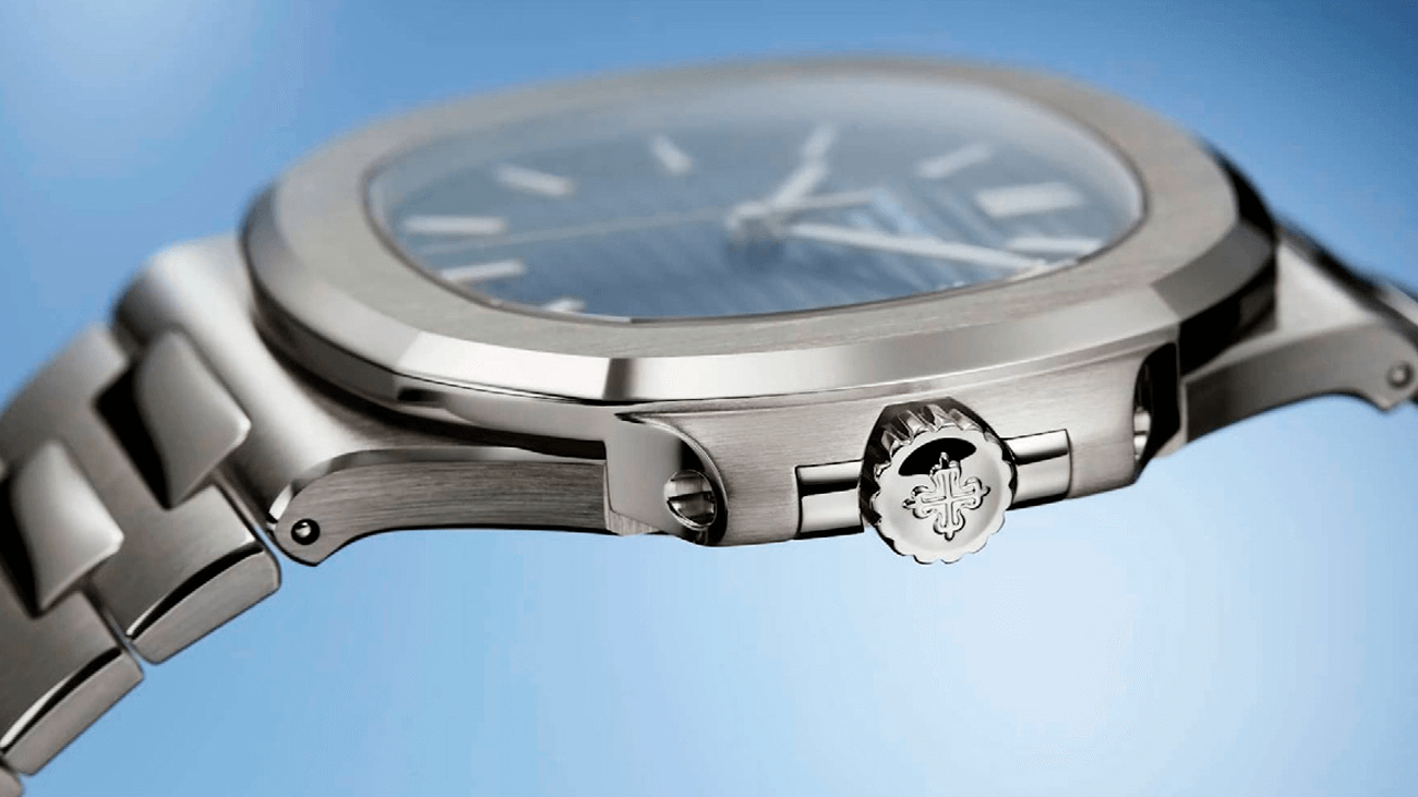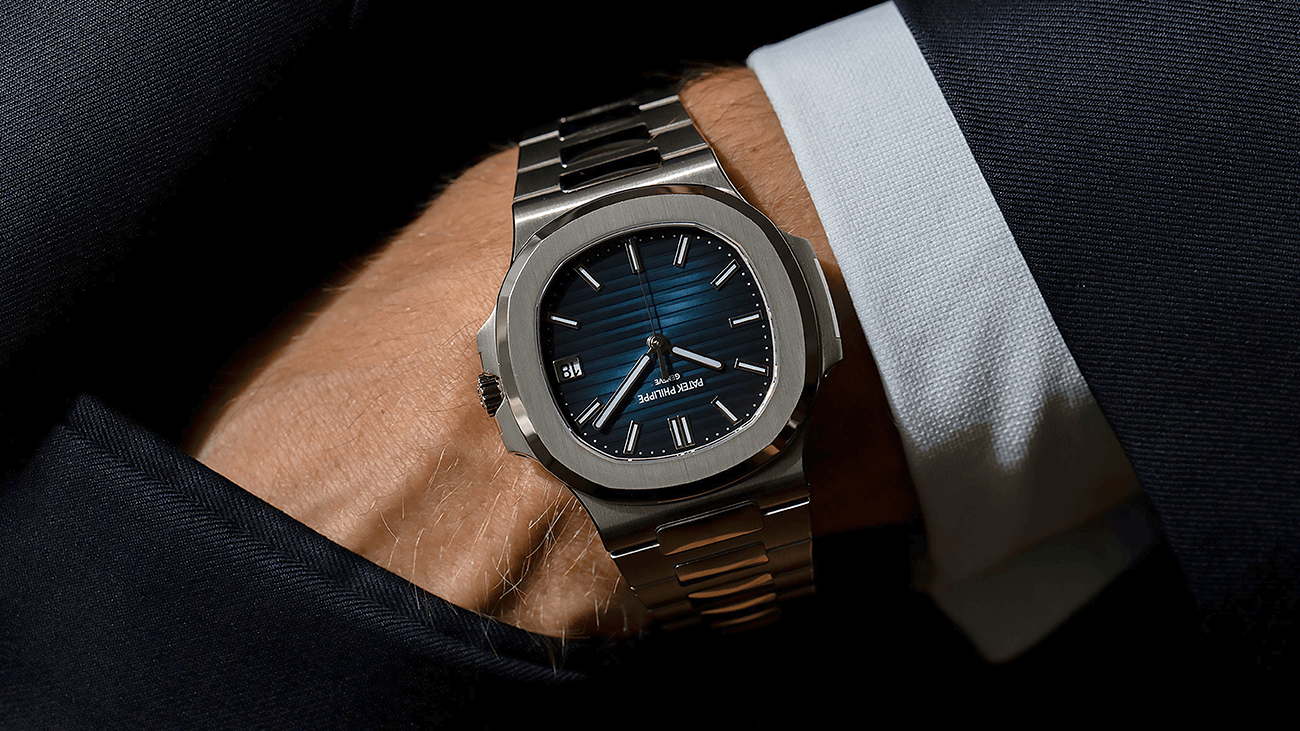 Uno de los rasgos más reconocibles del Nautilus es su esfera, y en esta referencia alcanza una de sus expresiones más refinadas. El azul sunburst con degradado negro en los bordes genera una sensación de profundidad y movimiento constante, acentuada por el emblemático relieve horizontal.
