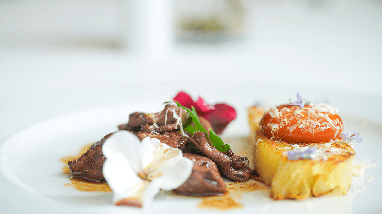 • Ojo de bife argentino: marmolado, con jugo reducido, zanahorias tiernas y vinagreta de trufa, donde la técnica se funde con la elegancia del sabor.